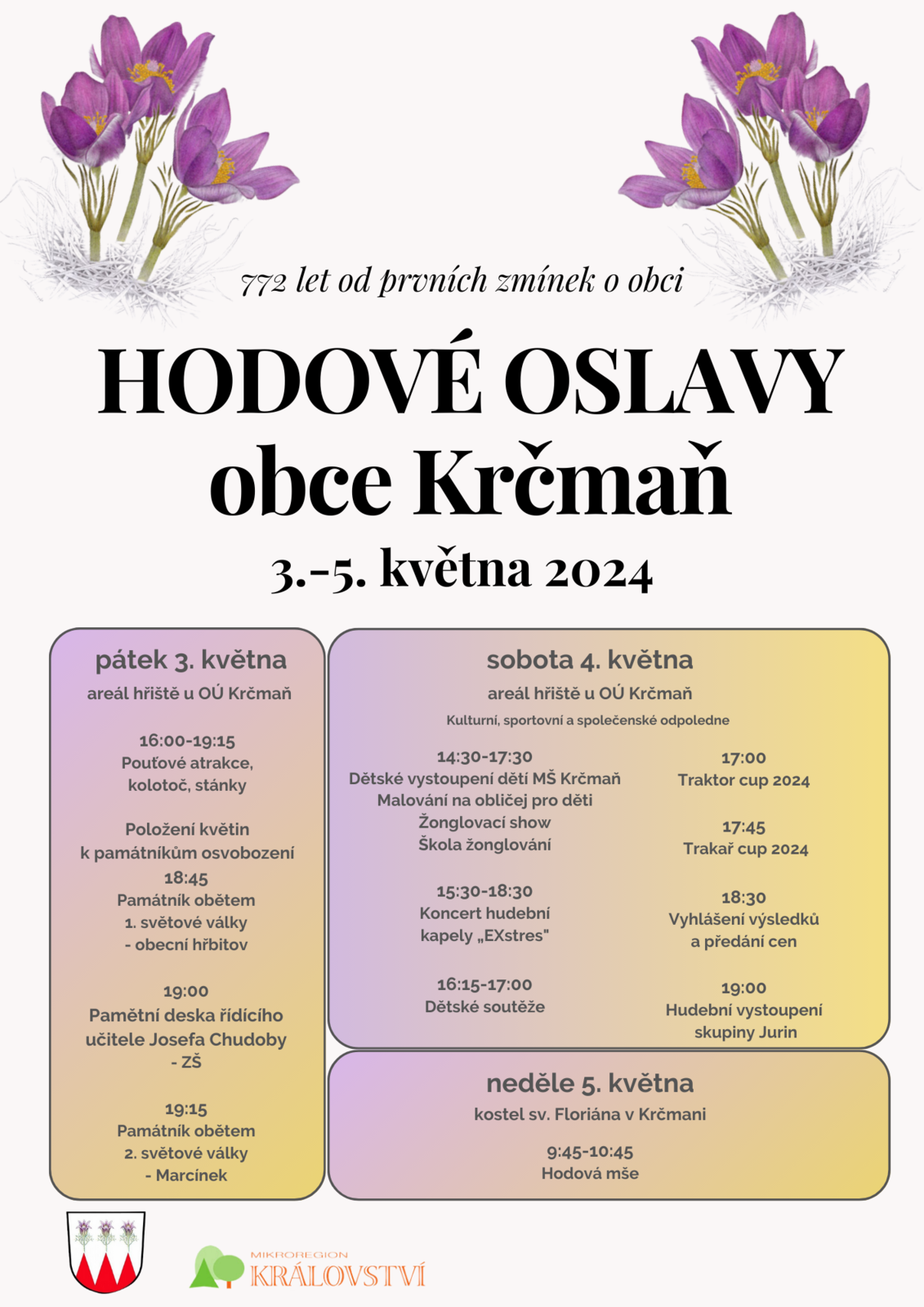 Úvod > Dění v obci > Aktuality > Hodové oslavy obce Krčmaň 3. - 5. 2024 a Traktor cup 2024