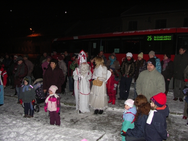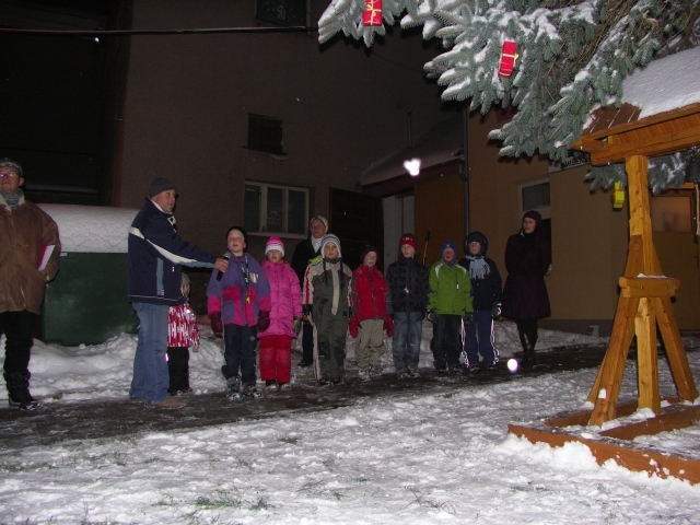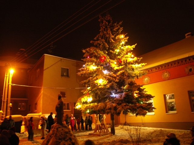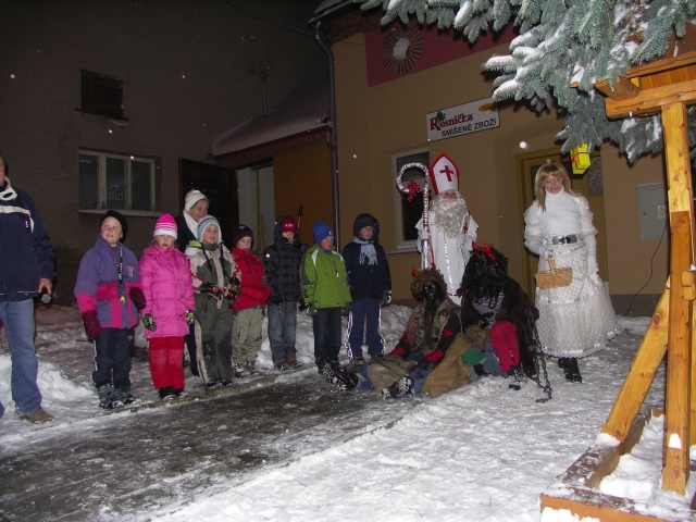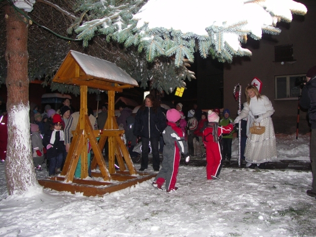 Po projevu starosty obce vystoupili žáci základní školy a pan ing. Římský pohovořil o významu Adventu. Děti si zazvonily na zvonek a Mikuláš s andělem a čerty rozdávali cukroví.